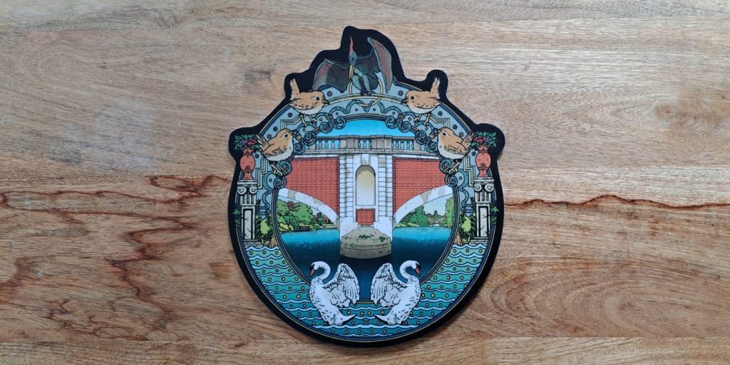 Description: Hampton Court Bridge saves its beauty for the side view – arches like the curve of a swan’s wing were where the poem and image began.