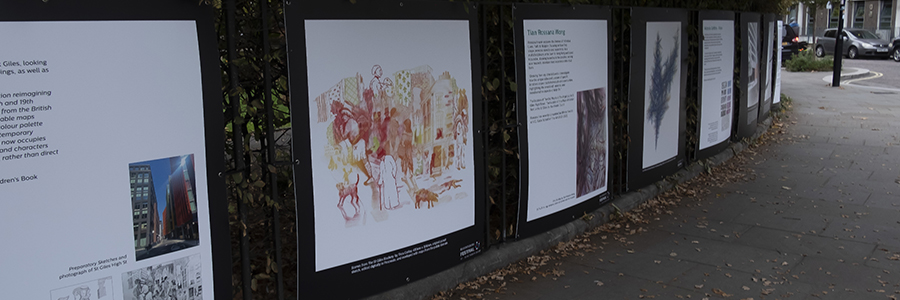 This public art project has been organised by the Bloomsbury Festival in collaboration with City Lit. Art students from across London created work in response to historic depictions of life in the area and their own experiences walking the streets of St Giles and Bloomsbury.