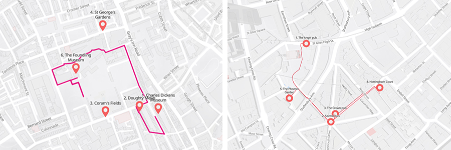 by Vivien Ellis and volunteers, working in partnership with Camden Guides, two ballad walks were created. One featured the area of St Giles and Seven Dials and the other, linked with the archives in the Dickens Museum, started outside Charles Dickens old home in Doughty Street.